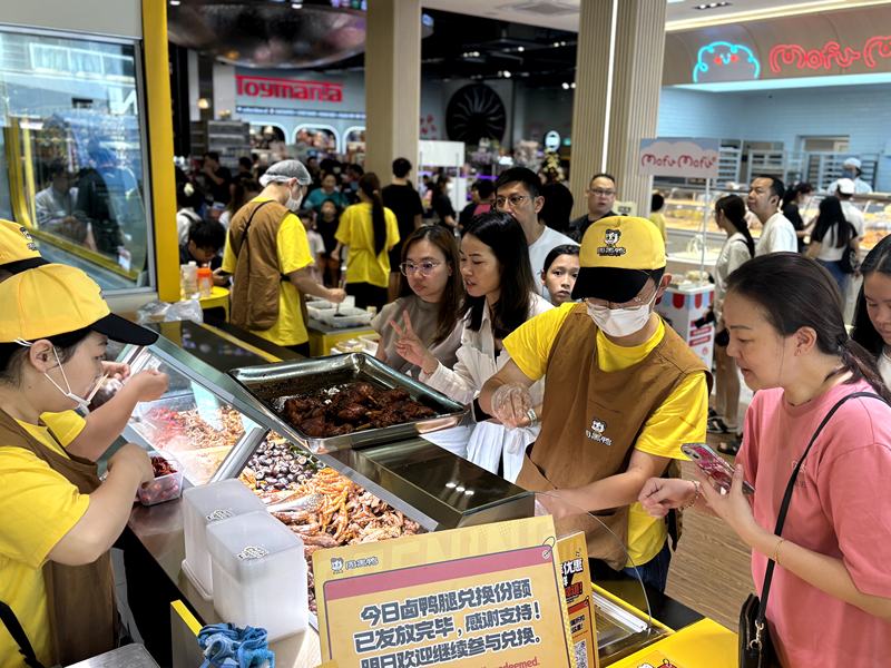 马来西亚消费者在试吃和选购周黑鸭产品。